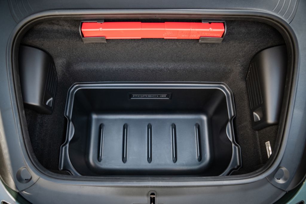 XLJ, Porsche-Wappen auf Ablagefachdeckel in Race-Tex